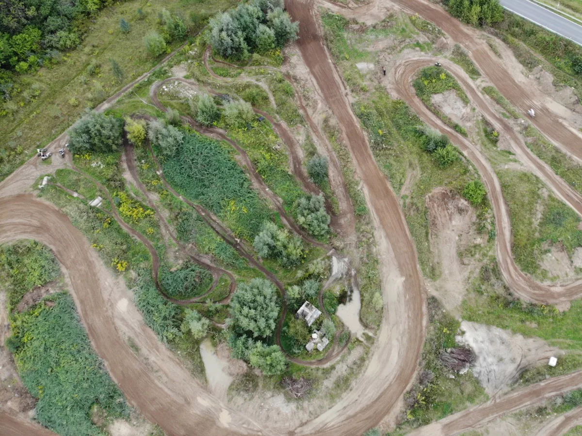 Zusätzlich gibt es einen Enduro-Bereich mit einigen Hindernissen (im Luftbild oben zu sehen).