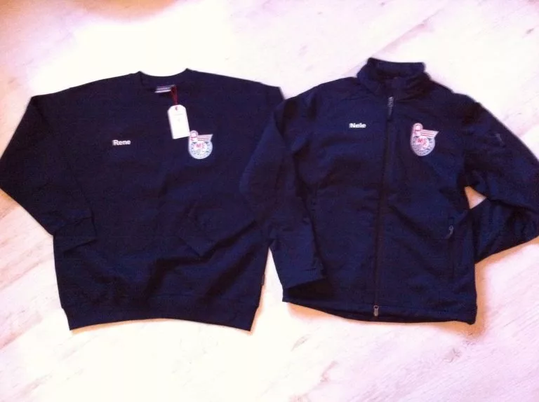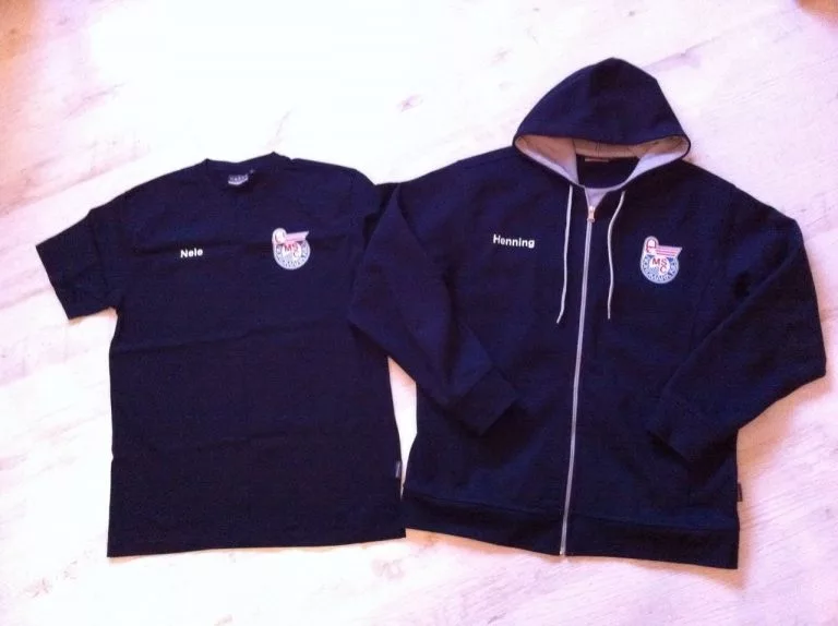 Die hochwertig verarbeiteten Kleidungsstücke werden in dunkelblau geliefert und sind in den Größen XS bis XXXL erhältlich. Der Aufdruck besteht aus dem großen Rückenschriftzug „MSC NORDMARK KIEL“ und dem Vereinslogo auf der Brust. Zusätzlich ist es möglich den „Namen“ auf die rechte Brustseite zu drucken.